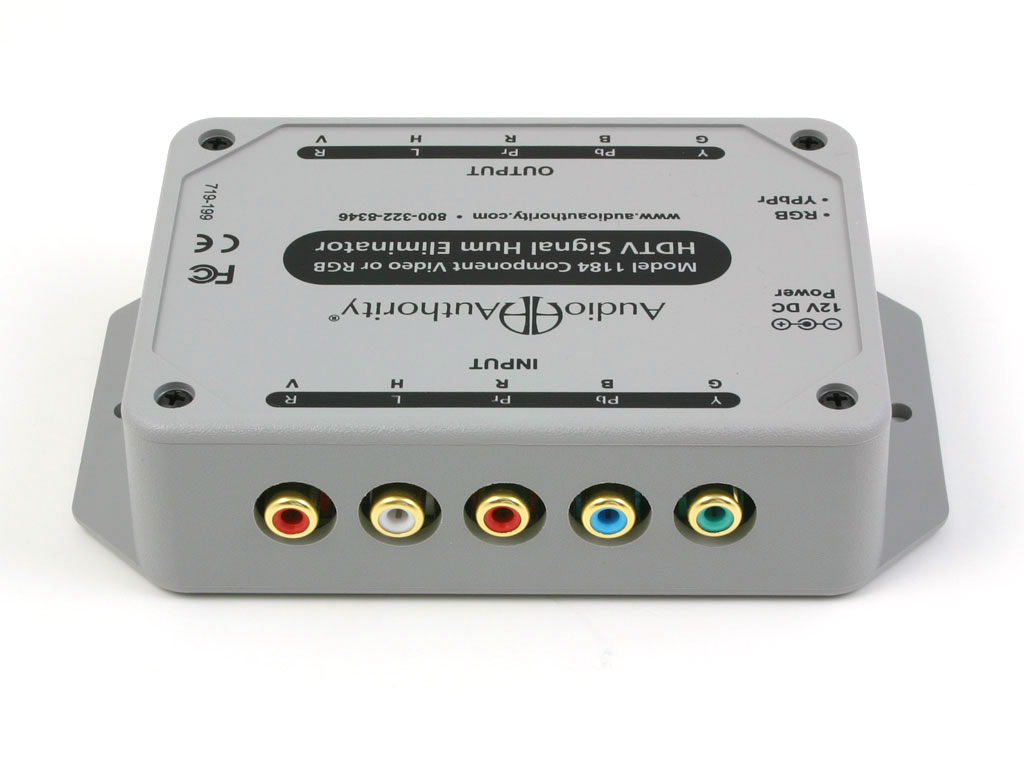 The Audio Authority 1184 HDTV Signal Hum Eliminator / DC Blocker can solve many hum and noise problems in HDTV video and/or audio signals. The 1184 is suitable for Y/Pb/Pr component video, as well as stereo audio. The unit can also handle RGB video in the R/G/B/H/V colorspace, by switching the unit into RGB mode, which configures the shared channels for H/V video mode. (Naturally, stereo audio filtering is not available when the 1184 is in RGB mode).