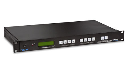 The Intelix FLX-44 is a four input by four output HDBaseT/HDMI matrix switcher. The Intelix FLX-44 matrix improves the ease of installation similar to previous Intelix HDMI matrix switchers.